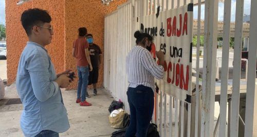 CANCÚN, Quintana Roo, 26 de junio. – Estudiantes del Instituto Tecnológico de Cancún se manifestaron afuera del plantel en busca de apoyo de las autoridades para que puedan continuar con sus estudios.