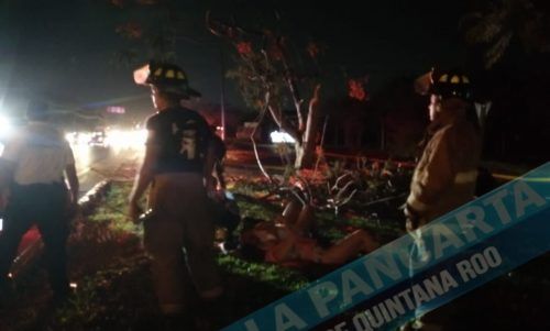 El accidente ocurrió a las 9:50 de la noche de este domingo sobre el Boulevard Playa del Carmen frente a complejo hotelero Mayakoba cuando la conductora del vehículo particular marca Chevrolet Aveo color gris, perdió el control del vehículo debido al pavimento mojado y exceso de velocidad.