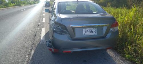 PLAYA DEL CARMEN, Quintana Roo, 10 de agosto. – Aparatoso percance vehicular se registró sobre la carretera federal 307, luego de que el conductor de una motocicleta chocará contra la parte trasera de un vehículo particular.
