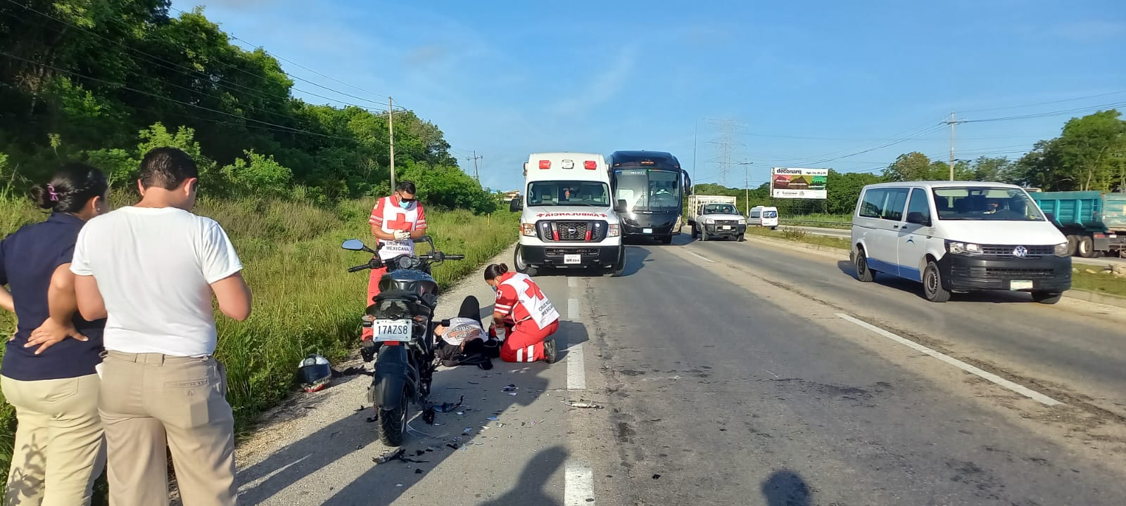 El hecho se registró pasando la curva de Punta Maroma en dirección a Cancún, cuando automovilistas que circulaban por la zona, solicitaron la intervención de una ambulancia, para la valoración del joven motociclista lesionado.