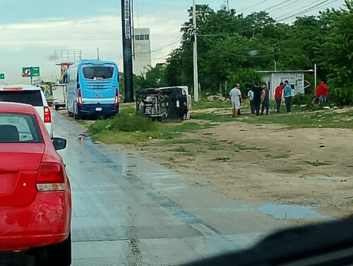 CANCÚN.- Por lo menos cuatro accidentes viales, entre estos una volcadura, se registraron durante esta tarde en el bulevar Luis Donaldo Colosio, derivado del exceso de velocidad sobre pavimento mojado por las lluvias de este día. Las autoridades reportaron dos personas lesionadas y daños materiales.