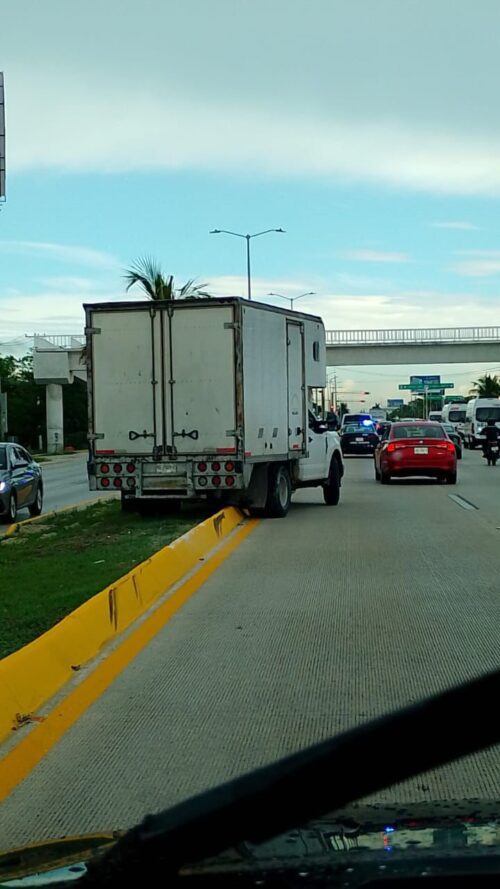 El primer accidente ocurrió cerca de la entrada de la delegación Alfredo V. Bonfil, cuando el conductor de una camioneta de carga, perdió el control y tras derrapar se subió al camellón, lo que dejó solo daños materiales.