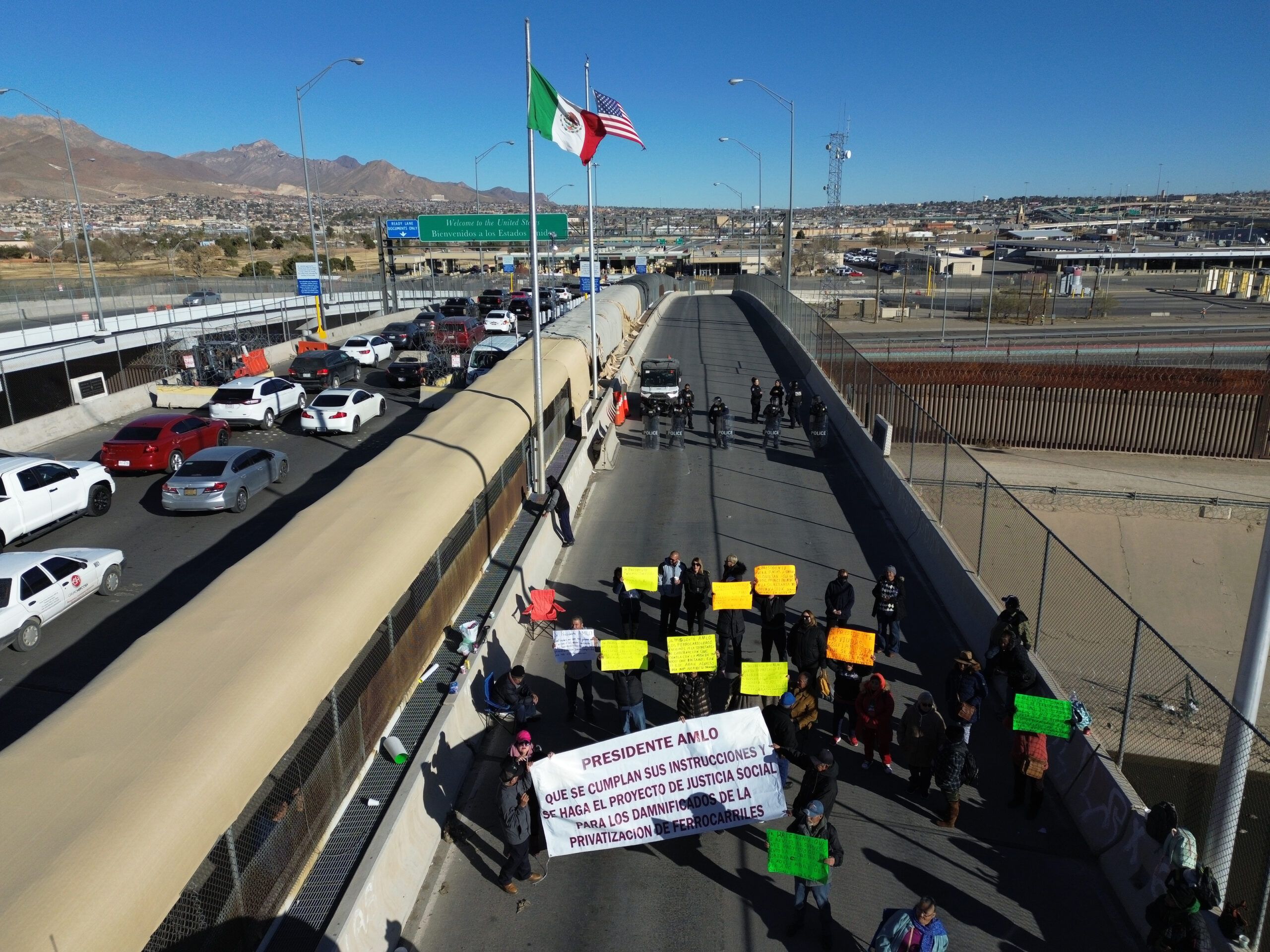 Los exferrocarrileros bloquearon el Puente Internacional Córdova-Américas, en Ciudad Juárez, Chihuahua para exigir indemnización justa