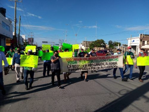 En la marcha pacífica trabajadores de las tortillerías de la ciudad exigieron el alto a los aumentos del gas, luz y harina que son vitales para producir la tortilla.