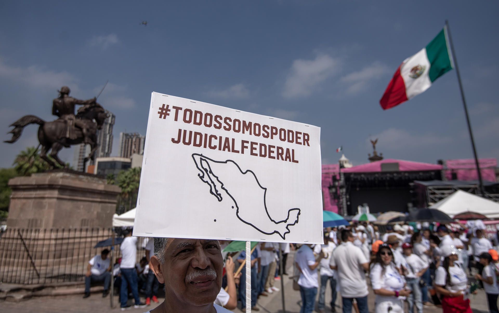En Monterrey, la segunda ciudad más grande del país, los trabajadores llevaron a la Macro Plaza consignas como “Poder Judicial, contrapeso nacional”, y “Sin Poder Judicial, ¿quién te va a amparar?”.