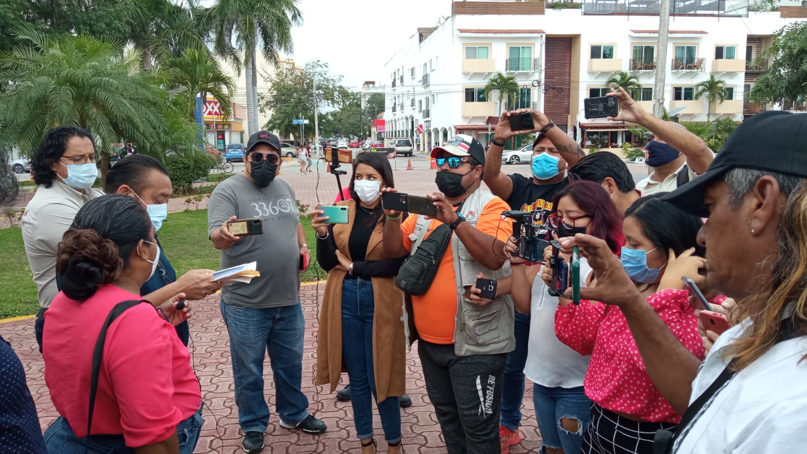 PLAYA DEL CARMEN, Quintana Roo, 15 de febrero. – Un grupo de comunicadores se manifestaron de manera pacífica en la Plaza 28 de Julio para expresar su rechazo a una iniciativa de ley propuesta por la diputada local Iris Mora Vallejo, que, aseguran, criminaliza su actividad, al prohibir la publicación de información de ciudadanos.