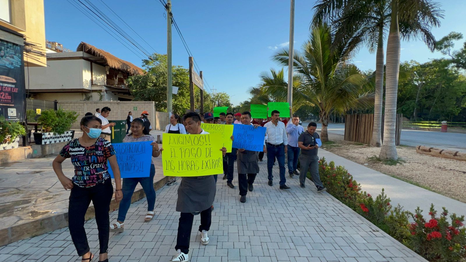 Otras irregularidades que mencionan en esta manifestación es que la empresa Hotel Aloft Tulum vulnera sus derechos laborales al no pagarles los eventos de manera puntual; no les paga horas extra y no da el trato digno que deben recibir trabajadoras y trabajadores.