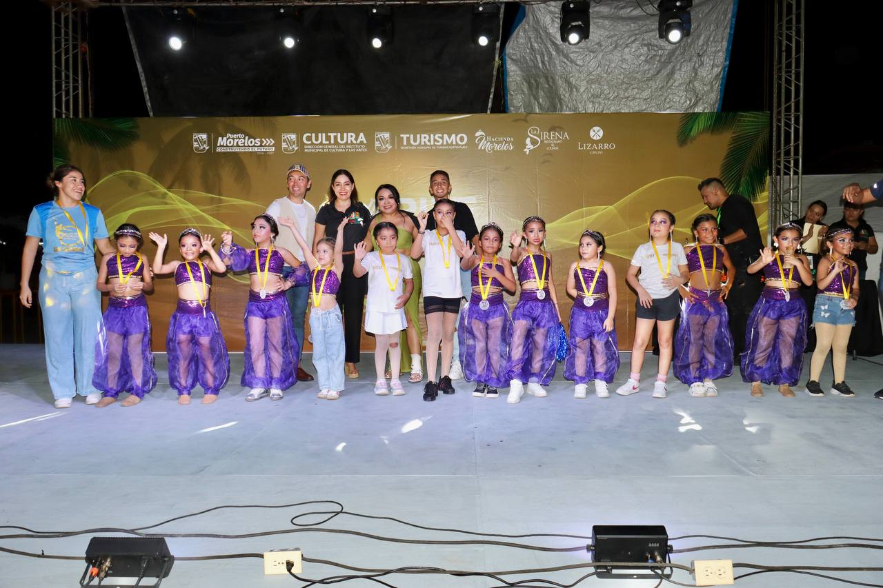 Por la tarde, la explanada del Parque Fundadores fue el escenario del concurso de baile en las categorías infantil y juvenil, que reunió a más de 300 espectadores. Academias de Cancún, Playa del Carmen y Puerto Morelos mostraron su talento en una competencia que evaluó técnica, musicalidad, sincronización, presencia escénica y coreografía.