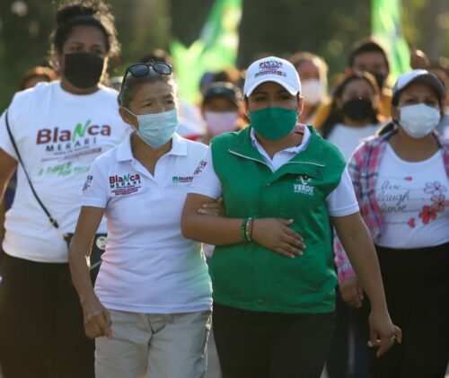 PUERTO MORELOS, Quintana Roo, 27 de abril. –  Blanca Merari Tziu Muñoz, candidata de la coalición “Juntos Haremos Historia”, destacó hoy que su plan de trabajo se basa en cinco pilares: Igualdad de Oportunidades, Tranquilidad para tu familia, Prosperidad y empleos, Sustentabilidad y medio ambiente y Buen gobierno, los cuales incluyen diversas acciones en materia de salud, asistencia social, deportes, servicios y obras públicas, ente otros rubros.
