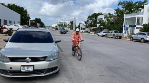 PLAYA DEL CARMEN, Quintana Roo, 03 de enero. – La nueva ciclo pista emergente en la avenida CTM es bloqueada por automóviles de funcionarios y usuarios que acuden al nuevo palacio municipal, así como por las unidades del transporte público, quienes se saltan las boyas y ponen en riesgo a ciclistas al confinarlos a los carriles centrales señaló Javier Reséndiz del grupo Bicineta.