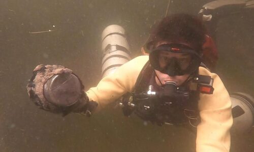 “Luego de varias inmersiones, explorar nuevamente la zona con detectores de metales y extraer estos artefactos, nos resulta evidente que es imposible extraerlos todos sin dedicarle varias jornadas más y con el apoyo de equipo pesado como en ocasiones anteriores hemos utilizado, ya que todo parece indicar que son cientos de estos aparatos que se encuentran debajo de una espesa capa de sedimento producto de los años de acumulación de materia orgánica”, informó el arqueólogo Sergio Grosjean Abimerhi.
