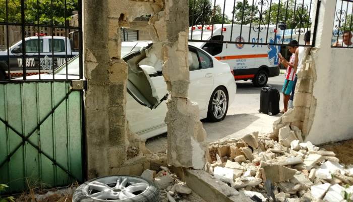 PLAYA DEL CARMEN, Quintana Roo, 14 de Julio.- La tarde del viernes se registró un aparatoso accidente, un turista de origen extranjero terminó estrellando su lujoso BMW contra una vivienda en la colonia Luis Donaldo Colosio.