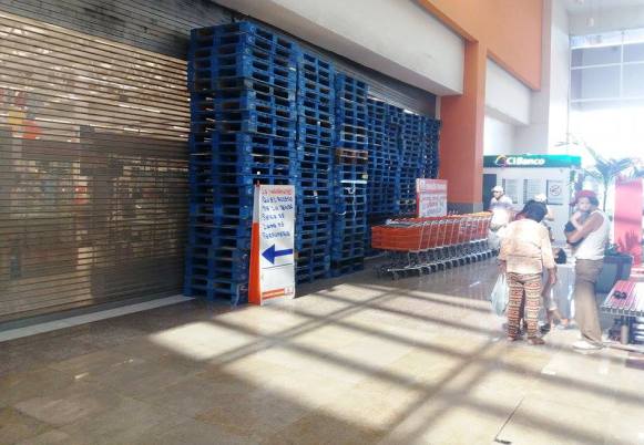 Sin embargo ante la presencia de ciudadanos que necesitaban hacer sus compras de manera organizada en alguna de estos supermercados se abrieron sólo una puerta de acceso sin retirar las tarimas con las cuales se estarían protegiendo en caso de un saqueo masivo.