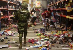 Los súper mercados de esta ciudad optaron por bajar sus cortinas como medida de seguridad para evitar saqueos y destrozos como ha ocurrido en otras partes del país. Walmart, Chedraui y Aurrera implementaron murallas con sus tarimas en los accesos para protegerse de cualquier amenaza.