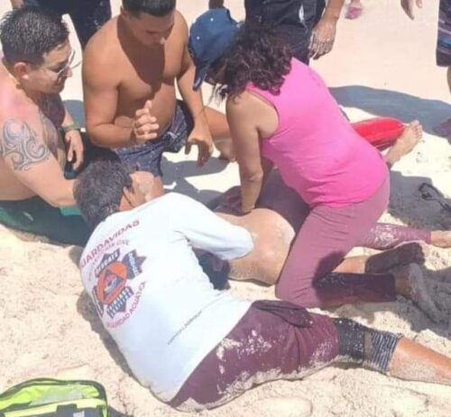 Mientras llegaba la unidad médica guardavidas rápidamente lo rescataron, el joven de aproximadamente 30 años de edad ya estaba inconsciente.