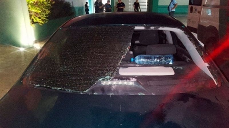 Entonces una piedra se soltó, rompiendo el parabrisas del auto y golpeando la cabeza de la mujer con tal fuerza que atravesó el vehículo y salió por el medallón trasero.