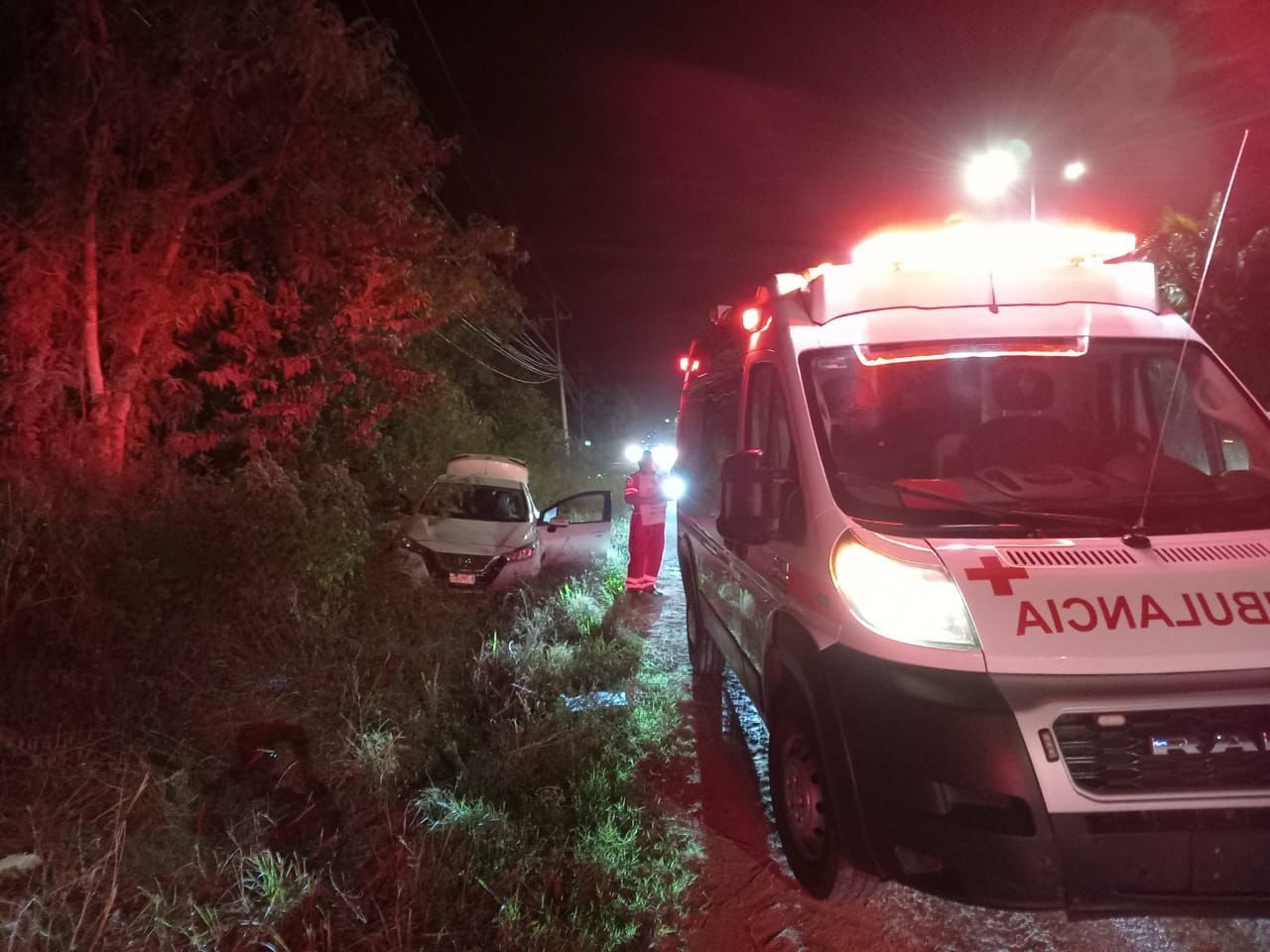 El hecho ocurrió alrededor de las 10:45 de la noche cuando automovilistas te pasaban por el bulevar Playa del Carmen a la altura del parque Tres Ríos, vieron un vehículo Nissan Sentra, color blanco, con placas JD 895 L, fuera de la vía de rodamiento entre un área de maleza.