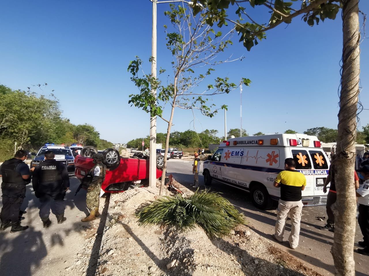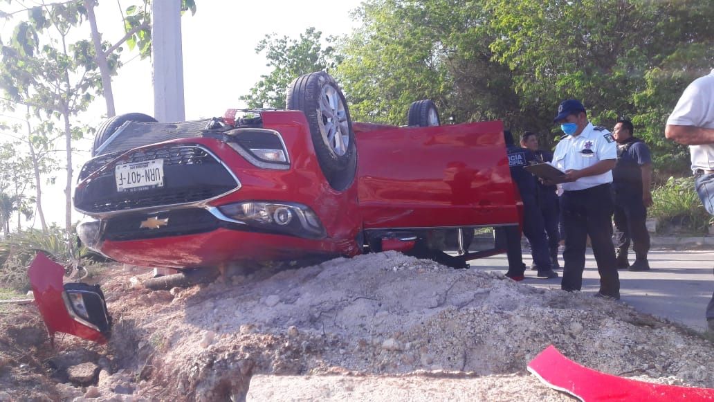 CHETUMAL, Quintana Roo, 21 de mayo.- El exceso de velocidad y la falta de precaución fueron la causa para que un vehículo quedara volcado y con las llantas hacia arriba. El accidente dejó como saldo a cuatro personas lesionadas, entre ellas una niña de 2 años.