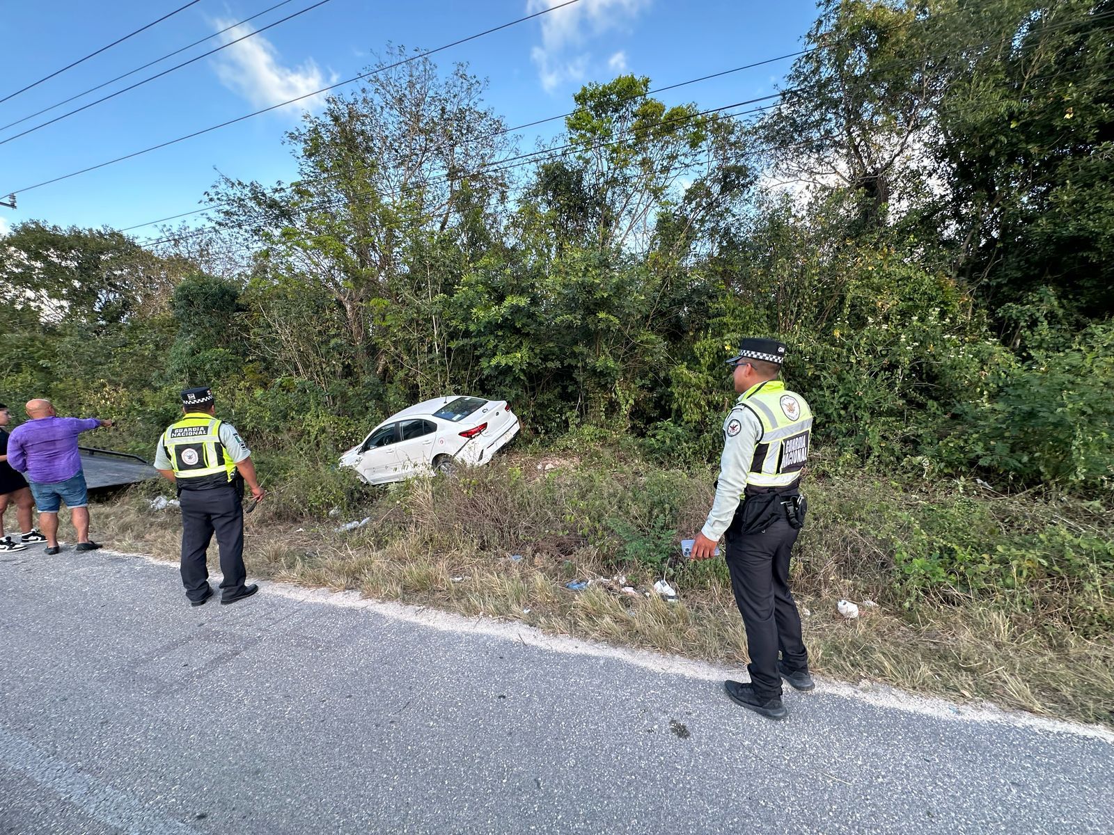PLAYA DEL CARMEN, Quintana Roo, 07 de abril de 2025. – Una familia vivió momentos de tensión y susto luego de que el vehículo en el que viajaban se saliera de la vía y terminara dentro de la maleza a un costado de la carretera federal 307, a la altura del kilómetro 276, en las inmediaciones de Punta Venado.