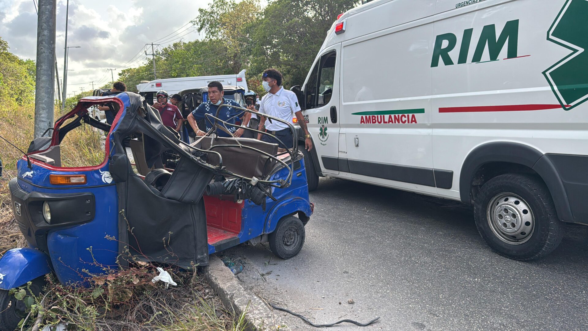 CANCÚN, Quintana Roo, 29 de mayo de 2025.- Este miércoles se informó sobre un trágico accidente de tránsito sobre el Arco Vial a la altura del fraccionamiento Galaxias del Sol, donde el conductor de un mototaxi del sindicato IslaCun, volcó al parecer por exceso de velocidad, resultando con graves lesiones; un hombre que iba como pasajero perdió la vida.