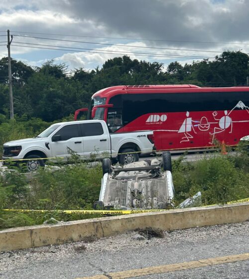 De acuerdo con los primeros reportes, el siniestro ocurrió alrededor de las 9:30 horas, cuando un automóvil Nissan March, que circulaba en dirección de Puerto Morelos hacia Playa del Carmen, sufrió la ponchadura de uno de sus neumáticos. Esta situación provocó que el conductor perdiera el control de la unidad, saliéndose de la carretera y terminando sobre el camellón central.