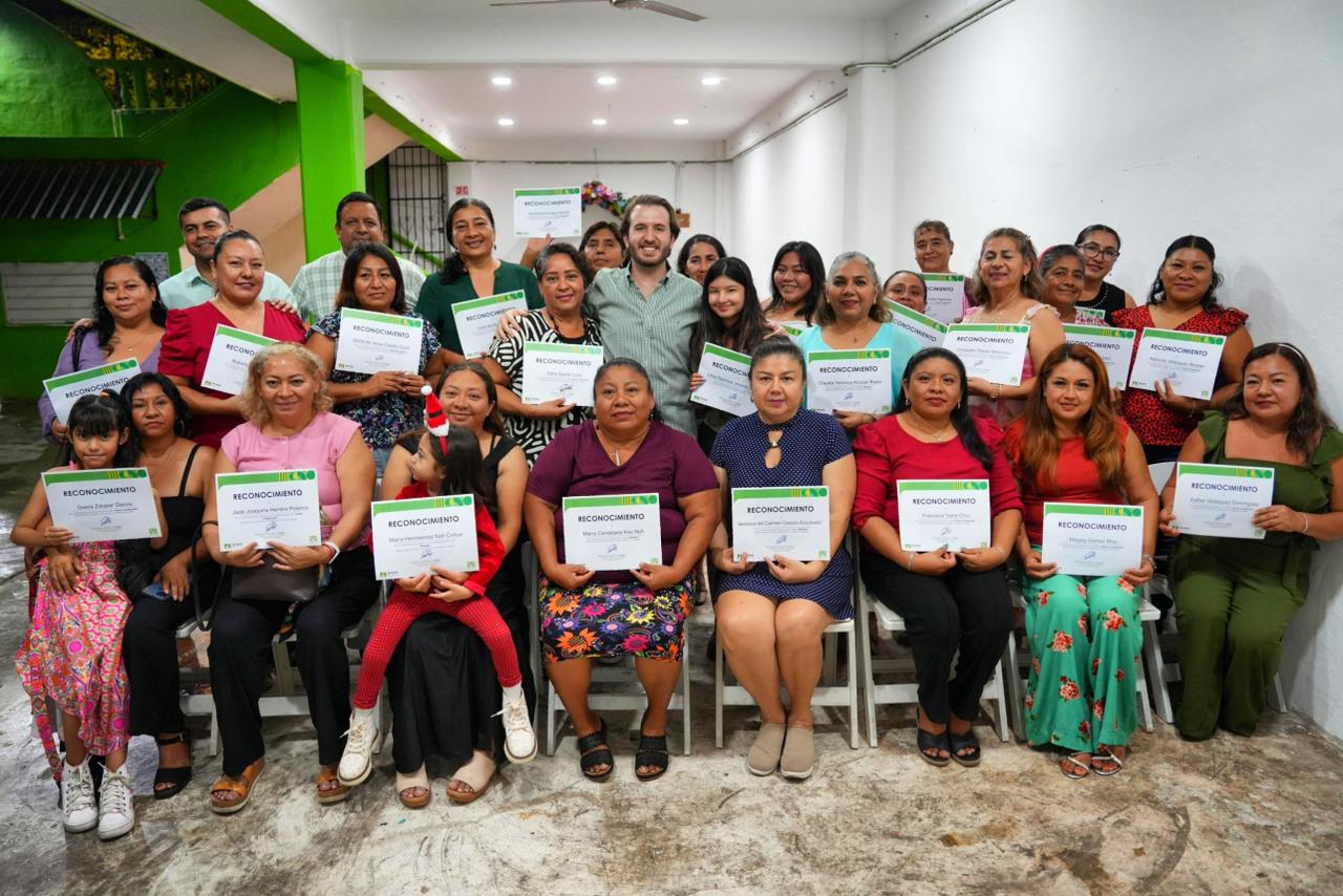 El también regidor, destacó la importancia de generar espacios de capacitación y crecimiento personal, al entregar los reconocimientos a las beneficiarias que concluyeron con éxito talleres de piñatas, corte y confección, así como elaboración de velas aromáticas, desarrollados durante tres meses.