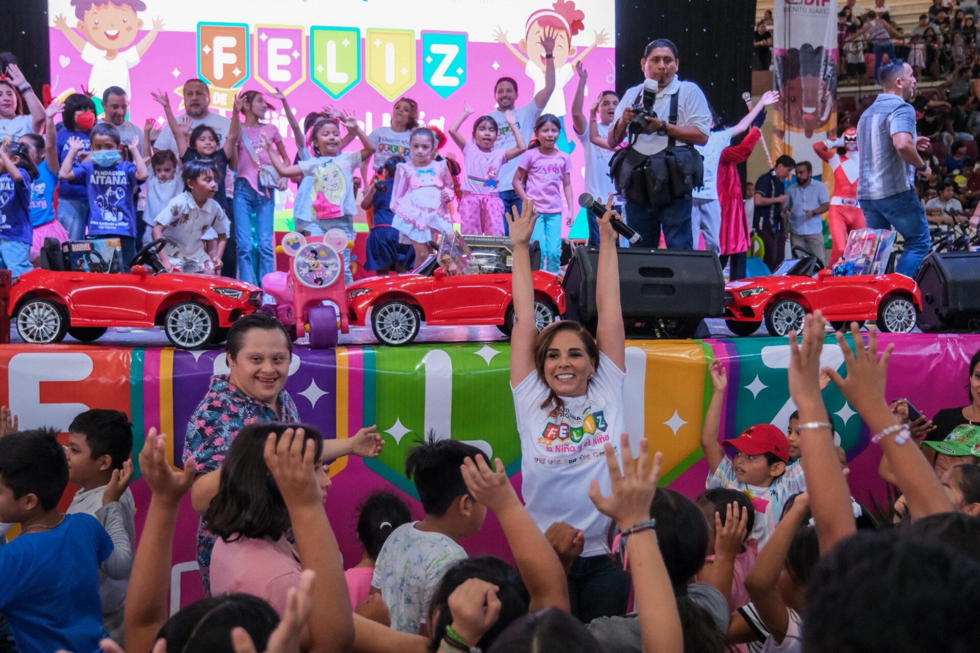 Con un festival lleno de diversión y sonrisas, la gobernadora Mara Lezama convivió con 9 mil 787 personas, entre ellos 3 mil 286 niñas, 3 mil 567 niños y 2 mil 934 adultos, quienes bailaron y cantaron con un show de botargas, concursos, rifas, etc., en una gran celebración, hecha para ellas y ellos. Cada niña y niño recibió su regalo.