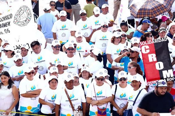 Del Sindicato Único de Trabajadores al Servicio de H. Ayuntamiento de Solidaridad (SUTSAMS), Sindicato Transportistas de Materiales para la Construcción y Carga en General “José Quiam Chan”, Unión General de Obreros y Campesinos de México (UGOCM), Sindicato de Taxistas “Lázaro Cárdenas del Río”, Sindicato de Transportistas “Antonio González Fernández”, Sindicato Nacional de Trabajadores al Servicio de la Educación (SNTE), Sindicato de Trabajadores del Colegio de Bachilleres en Quintana Roo (SITACOBAQROO), Unión de Talleres, Similares y Conexos de Solidaridad, A.C. (CNOP).