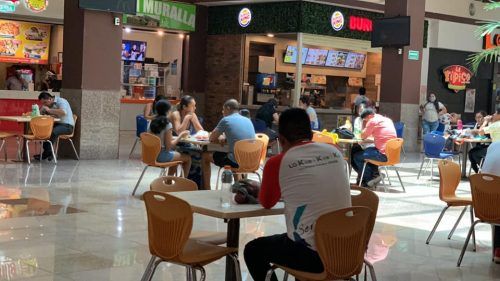 En las zonas de restaurantes de las plazas comerciales tampoco se rebasó el número de comensales permitidos, al haber siempre disponibles mesas en área publica. Sin embargo en las cocinas de los comercios cocineros y colaboradores se notaban activos debido al incremento de pedidos a domicilio.