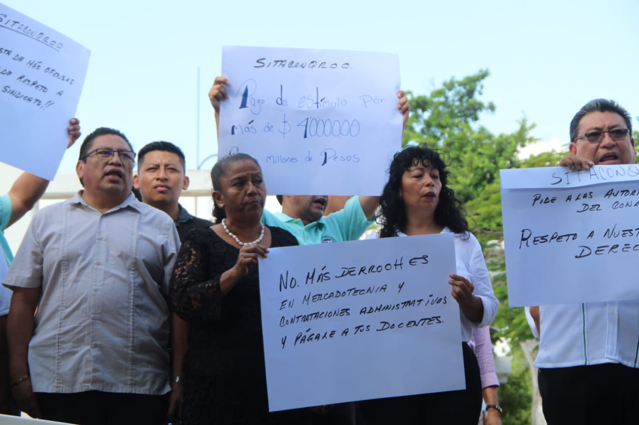 “Somos el subsistema más golpeado y más pisoteado, por debajo de los Cecytes y Bachilleres”, sentenció. Relató que estos problemas se han venido dando desde hace tiempo. A Montalvo Ruiz le han presentado oficios desde que asumió la dirección, la cual heredó de Nelia Uc Sosa, quien a su vez llegó cuando se fue Cecilia Loría Marín. En sus gestiones se habría iniciado el atraso con los pagos.