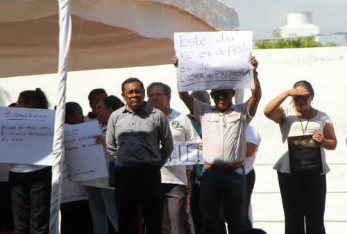 “Lo que exigimos es, en primer lugar, la liberación de un recurso federal etiquetado, de un recurso del ejercicio 2016-2017; tenemos información fidedigna de transparencia, de oficinas nacionales, y de la Secretaría de Hacienda y Crédito Público de que ese recurso llegó al estado; son más de 4 millones de pesos; el director general Aníbal Montalvo hace oídos sordos a nuestras peticiones”, denunció en entrevista Werner Aarón Ku Pech, secretario general del sindicato de docentes.