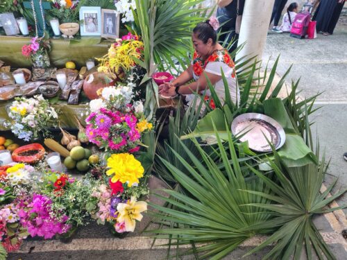 Los padres de familia colaboraron con entusiasmo, trayendo comidas tradicionales, flores de múltiples colores y objetos que evocaban el cariño hacia quienes partieron. Algunos comenzaron a trazar los caminos de pétalos para guiar a las almas hacia las ofrendas, cumpliendo así con el rito simbólico de dar la bienvenida a los finados.