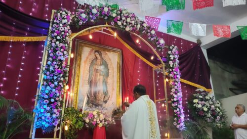 CHETUMAL, Quintana Roo, 12 de diciembre. – Más de mil personas, entre fieles creyentes y Antorchistas provenientes de distintas comunidades de Quintana Roo y de la capital abarrotaron el Santuario Guadalupano de Chetumal, durante las celebraciones del día de la Virgen de Guadalupe.