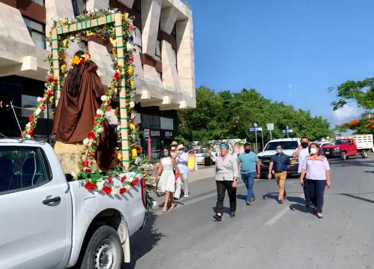 PLAYA DEL CARMEN, Quintana Roo. 10 de julio.- En el tercer día de las Fiestas Patronales 2020, en honor a la Virgen del Carmen la presidenta municipal, Laura Beristain acompañó a la imagen en su recorrido de la Iglesia de Nuestra Señora del Carmen a la colonia Bellavista.