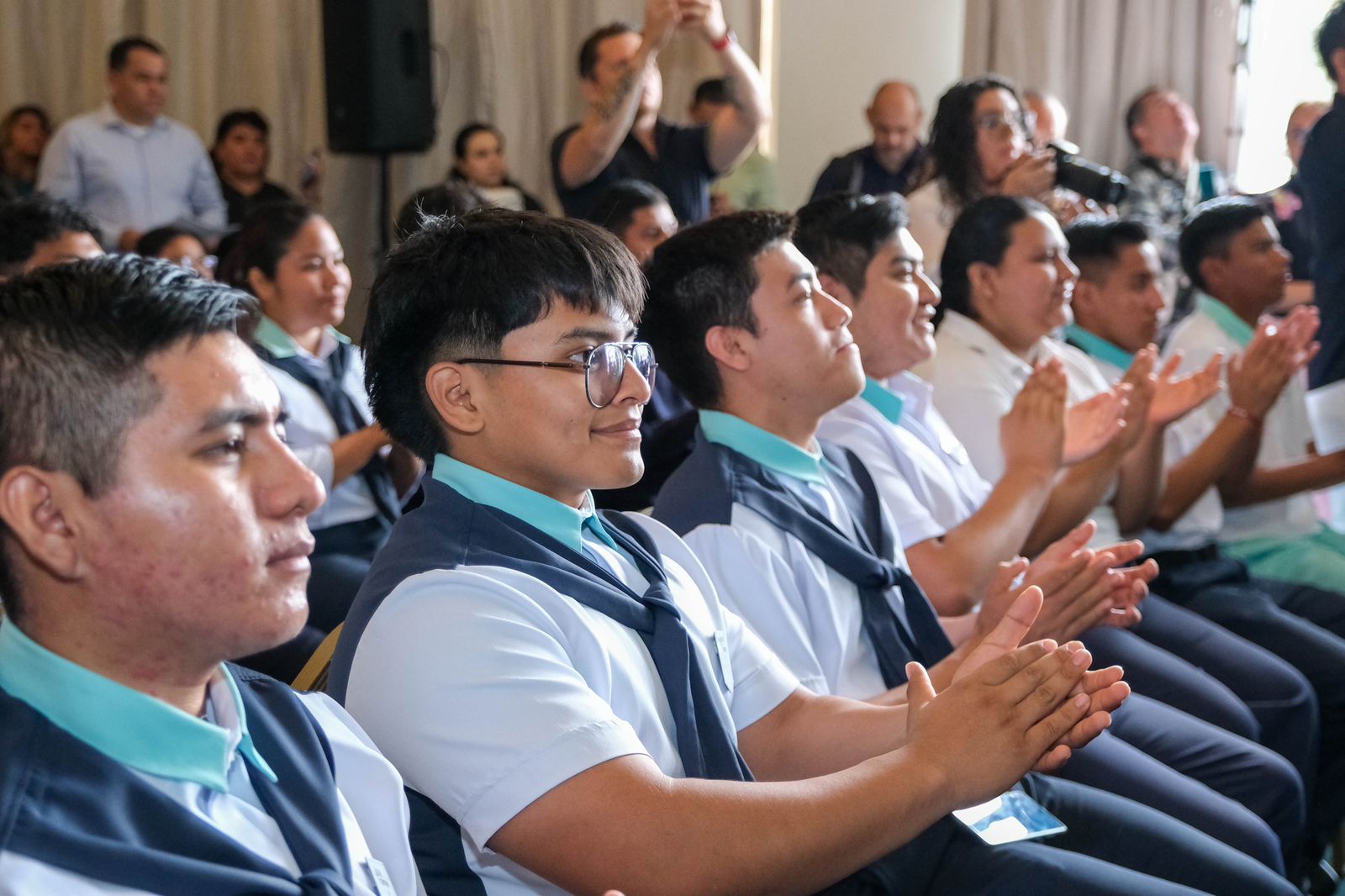 En el presídium acompañaron a las autoridades los estudiantes Paola Cristell Méndez Vázquez y Arturo Esteban, además de la presidenta municipal de Benito Juárez Ana Paty Peralta de la Peña; el director de operaciones de Iberostar México, Jesús Bosque; el director del Conalep Quintana Roo, Aníbal Montalvo Pérez; la diputada federal Anahí González; el secretario de Educación, Carlos Gorocica Moreno, y el diputado Luis Humberto Aldana Navarro, presidente de la Junta de Gobierno y Coordinación Política del Congreso del Estado.