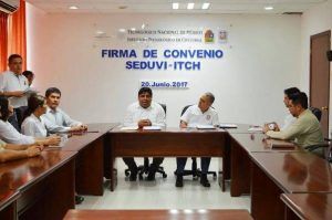 La firma del convenio estuvo encabezada por el Director Jurídico de la Seduvi, Julio Herrera López, en representación del secretario Carlos Ríos Castellanos, quien afirmó que el convenio permitirá contar con el profesionalismo, conocimientos, iniciativa y energía de los alumnos del ITCH.