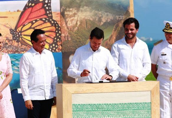 Antes, el Gobernador participó con el presidente Peña Nieto en la presentación del Decreto de Reserva de la Biosfera del Caribe Mexicano, que declara 5 millones 750 mil hectáreas como área natural protegida del Mar Caribe, ubicadas frente a las costas del estado, lo que permitirá actividades turísticas sin dañar el medio ambiente y en algunas zonas actividades pesqueras en menor escala, como en Isla Mujeres y en Punta Allen.