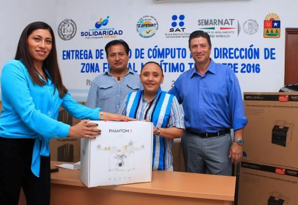 En reunión con los trabajadores de la Zona Federal Marítima Terrestre (ZOFEMAT), la edil entregó 24 equipos de cómputo, una tableta, un Dron y dos impresoras multifuncionales, que representan una inversión de 397 mil 470 pesos del Fondo para la Vigilancia, Administración, Mantenimiento, Preservación y Limpieza de la zona federal marítimo terrestre, a través del Programa de Administración Integral de la misma.