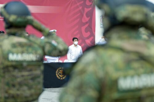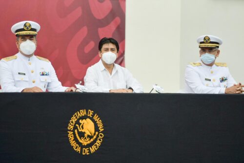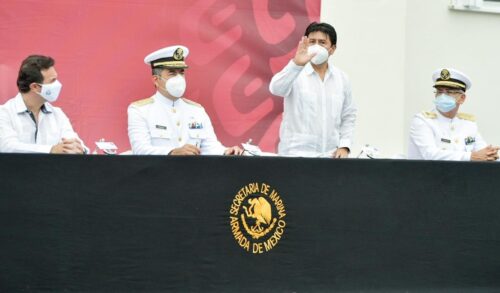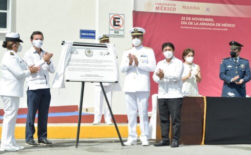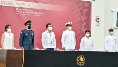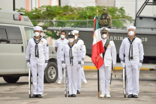 Luego de hacer los respectivos honores al lábaro patrio, al comandante del sector naval de Cozumel y a quienes integran la Heroica Escuela Naval del Colegio Militar, develaron una placa en reconocimiento al personal de Sanidad Naval que ha participado en el combate al Covid-19.