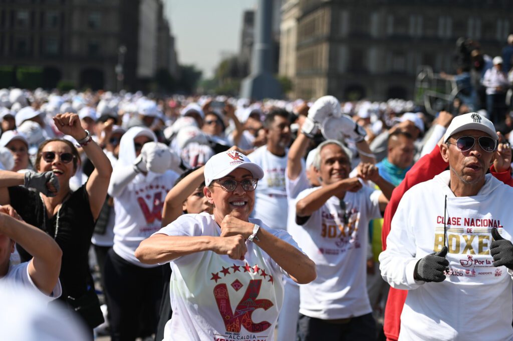 La presidenta Claudia Sheinbaum encabezó el inicio de la mega clase desde el Zócalo de la Ciudad de México, junto a figuras como Julio César Chávez, Roberto ‘Manos de Piedra’ Durán y Óscar de la Hoya.