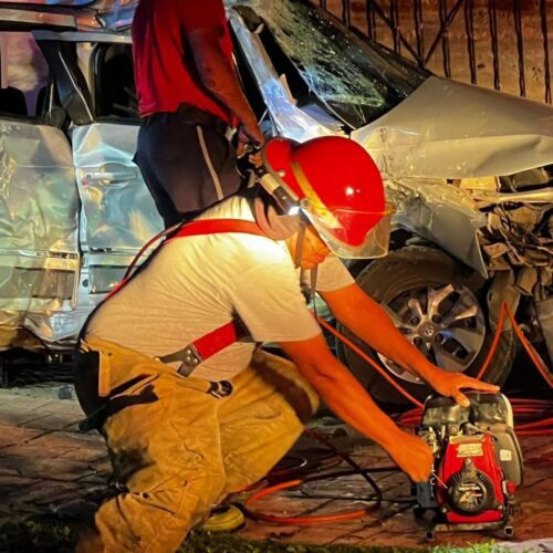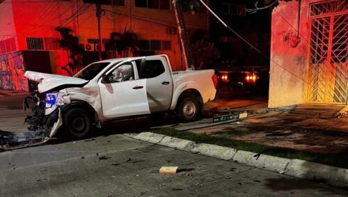 Chetumal, Quintana Roo, 16 de septiembre de 2025.– Un aparatoso accidente registrado la madrugada de este martes en pleno centro de la capital del estado dejó como saldo tres personas lesionadas, una de ellas en estado grave, además de daños a la infraestructura urbana.