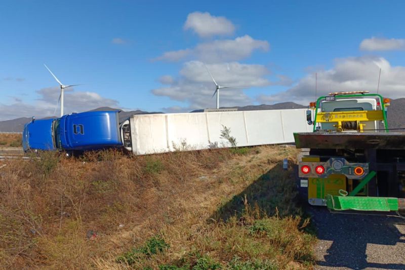 Las ráfagas de viento que superan los 180 kilómetros por hora, generadas por el Frente Frío 28, provocaron en las últimas 24 horas que volcasen ocho tráileres que circulaban, con carga ligera, por la carretera La Venta-La Ventosa, en el Istmo de Tehuantepec, en el estado de Oaxaca.