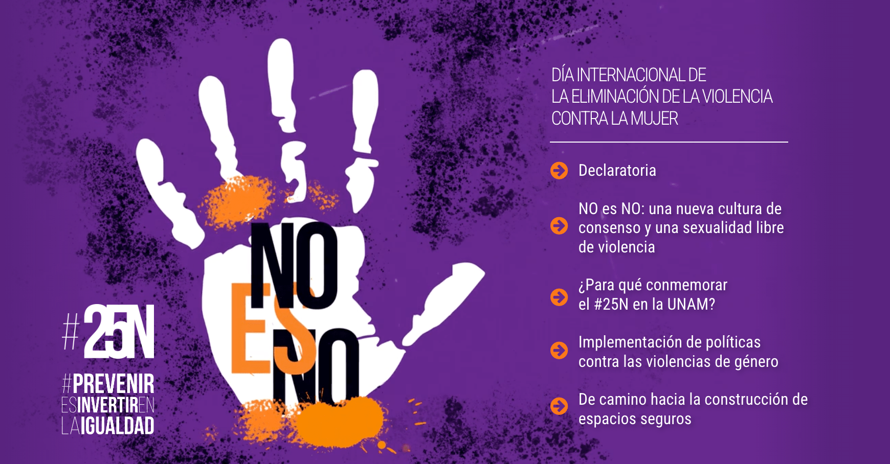 Gaceta UNAM: Día Internacional de la Eliminación de la violencia contra la Mujer Nación Por Redaccion La Pancarta de Quintana Roo Compartir El 25 de noviembre se conmemora el Día Internacional de la Eliminación de la violencia contra la Mujer noviembre 25, 2023 Vía López Dóriga Digital País Compartir