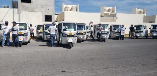 PLAYA DEL CARMEN, Quintana Roo, 3 de agosto.- El Sindicato de Mototaxis de Villas del Sol, afiliado a la CROC se sumó a la Campaña por la Salud de Todas y Todas, a través de la cual este sindicato contribuye para concientizar a sus agremiados y población en general respecto a la importancia del uso de cubrebocas para prevenir el contagio del COVID-19.