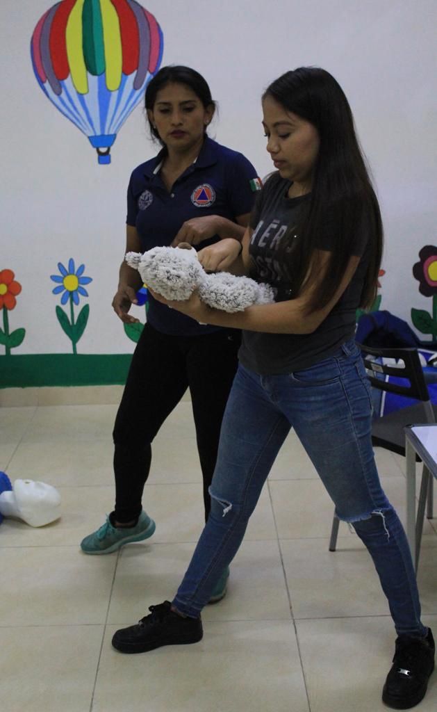 Las maestras, pedagogas, auxiliares y personal administrativo de la estancia, recibió este curso que tuvo una duración de tres horas, en donde se les dieron elementos básicos para que en caso de una emergencia sepan cómo actuar de acuerdo a lo que se esté presentando, ya que ellos son los primeros respondientes y su labor es evitar el caos y lograr controlar la situación, así también deberán saber cómo estabilizar a una persona herida o afectada físicamente, en tanto llegan los cuerpos de emergencia, afirmó la instructora de Protección Civil.