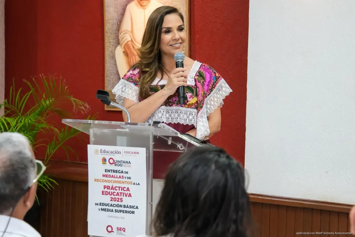 Chetumal, 11 de marzo de 2026..– En un acto de reconocimiento a la labor del magisterio, la gobernadora Mara Lezama Espinosa encabezó la entrega de medallas y reconocimientos a la práctica educativa 2025 para docentes de educación básica y media superior, evento en el que afirmó que el magisterio es parte fundamental de la historia del estado.