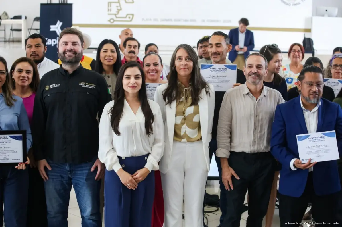 En el marco del evento se reconoció a las empresas participantes en el programa piloto y se entregaron distintivos a aquellas que alcanzaron niveles avanzados de madurez empresarial, reafirmando el compromiso de seguir construyendo un ecosistema económico más sólido y resiliente en Playa del Carmen.