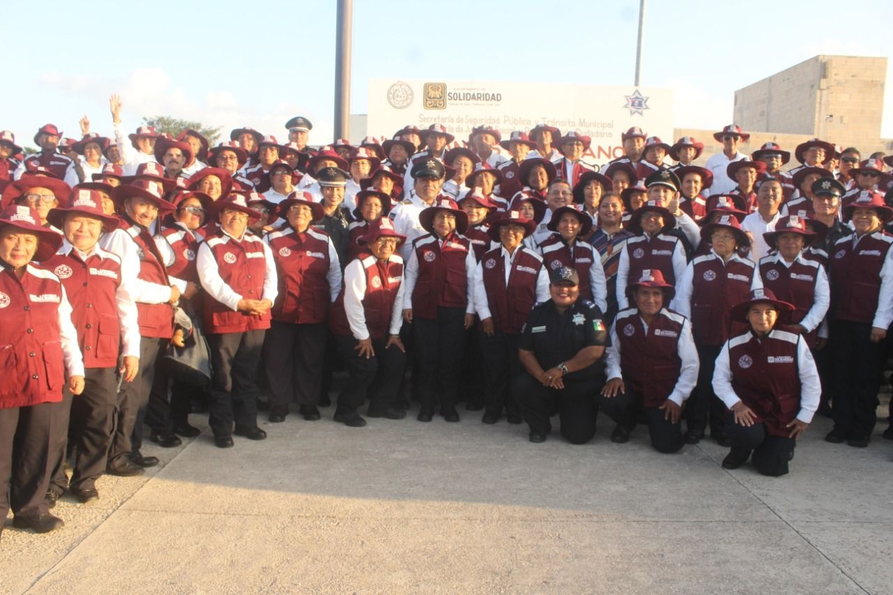 PLAYA DEL CARMEN, Quintana Roo, 5 de febrero Para mejorar la vigilancia en las escuelas, el gobierno de la presidenta Laura Beristain Navarrete, a través de la Secretaría de Seguridad Pública y Tránsito Municipal de Solidaridad que dirige el comandante Jorge Robles Aguilar, hizo entrega de 210 chalecos a los adultos mayores del programa “Vigilantes Ciudadanos” a fin de mejorar su labor para brindar seguridad a niños y jóvenes en los centros escolares, guarderías y parques.