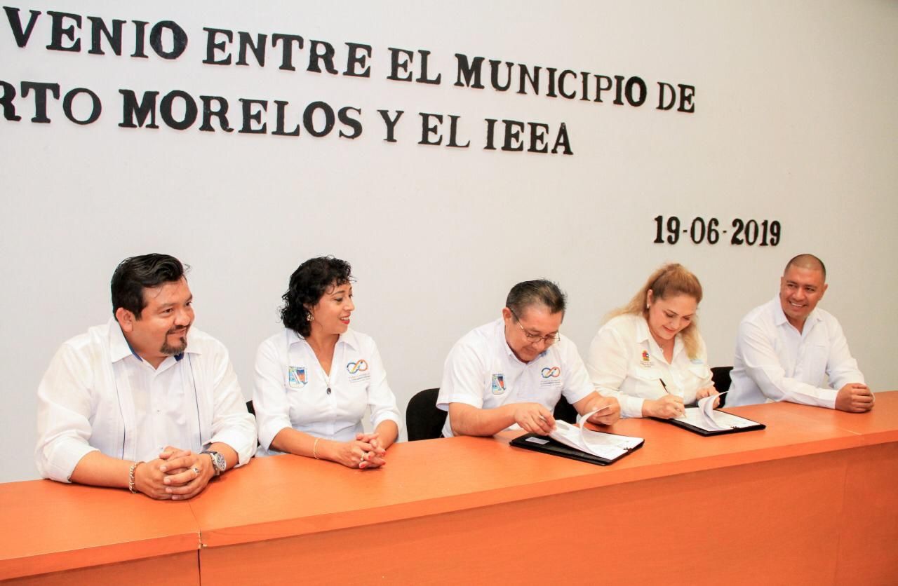 PUERTO MORELOS, Quintana Roo, 19 de junio .- Con el objetivo de abatir el rezago educativo en el municipio de Puerto Morelos, el gobierno de la presidenta municipal Laura Fernández Piña y el Instituto Estatal para la Educación de Jóvenes y Adultos (IEAA) firmaron esta mañana dos convenios para sumar esfuerzos y capacidades en este rubro.