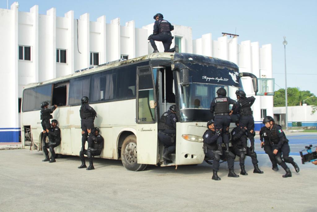 En el marco del evento se contó con la presencia de representantes de las instituciones de seguridad de los tres órdenes de gobierno quienes presenciaron una práctica sobre el rescate de rehenes y el aseguramiento de narcóticos en un puesto de inspección policial.